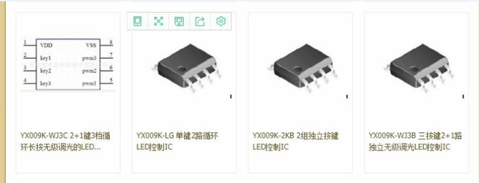 目前主要有:各类LED产品调光IC、分档调光led手电台灯IC、无级调光led台灯IC、调光调色温led灯具IC、移动电源控制IC、led电量显示IC、led应急灯IC、太阳能灯IC、RGB七彩IC、红外遥控灯具IC、定时控制IC、遥控风扇IC、迷你风扇IC、电机调速IC、玩具IC、及其他各类消费电子产品的专用控制IC等等